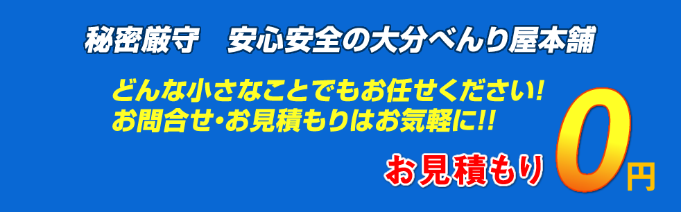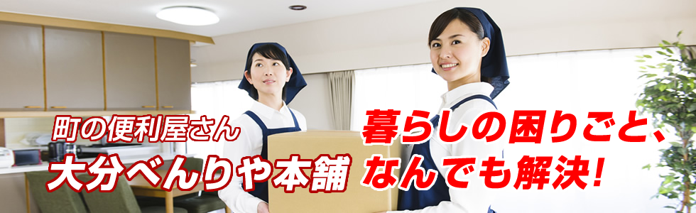 大分べんり屋本舗 店長の紙谷です。「忙しい。時間が無い。人手がいない…」「面倒だし。大変だから…」「どこに相談したらいいか分からない…」「こんなこと頼めないよね?」 そんな皆様の声にお答えできるよう、日常生活や身の回りのお手伝いや、お困り事の解決の 全力サポート を約束いたします。「気軽に頼める便利屋さん」「安心・誠実・迅速な便利屋さん」「日常生活の応援パートナー」 と皆様に認めていただけるように、スタッフ一同誠心誠意、精一杯働かせていただきます。「大分べんり屋本舗」をご活用・お役立てください!